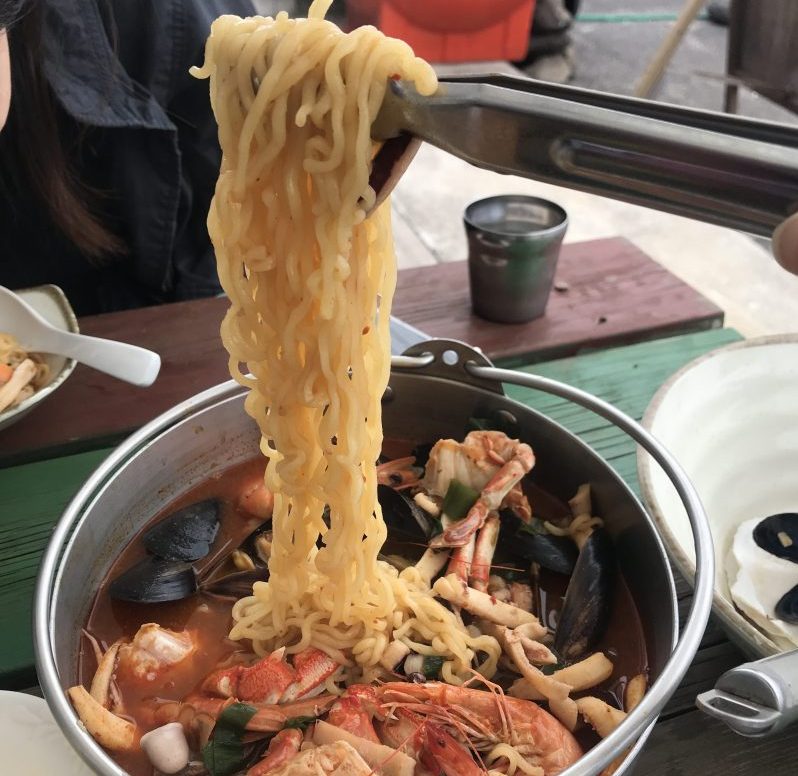 So we end up randomly picking a restaurant with a nice sea view to try on Korean seafood ramen.